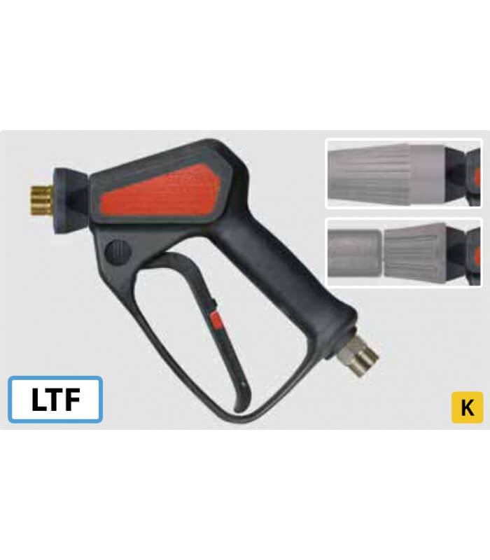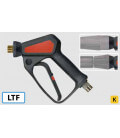Pistolet avec raccord de sortie surmoulé adaptable sur les lances rotatives.