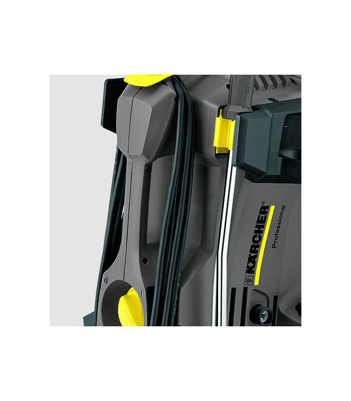 | La structure compacte et la poignée de transport à l'avant font du HD 5/11 P+ un nettoyeur haute pression à eau froide ultra-mobile. Flexible, il fonctionne à l'horizontale et à la verticale. En position horizontale, il bénéficie d'une stabilité maximale. Sa lance courte de 840 mm est très maniable et dispose de deux positions : ""parking"" et ""transport"". Pratique et ergonomique, il est équipé de compartiments pour buse triple et rotabuse ainsi que d'une sangle pour le rangement du câble et de la poignée-pistolet EASY!Force. Pour un plus grand confort, la poignée pistolet permet de réduire la force de recul à zéro et de diminuer les risques de troubles musculo-squelettiques. Elle est équipée d’une connexion EASY!Lock fiable et 5 fois plus rapide. L'HD 5/11 P+ est parfait pour les artisans. Equipement du Karcher HD 5/11 P:
