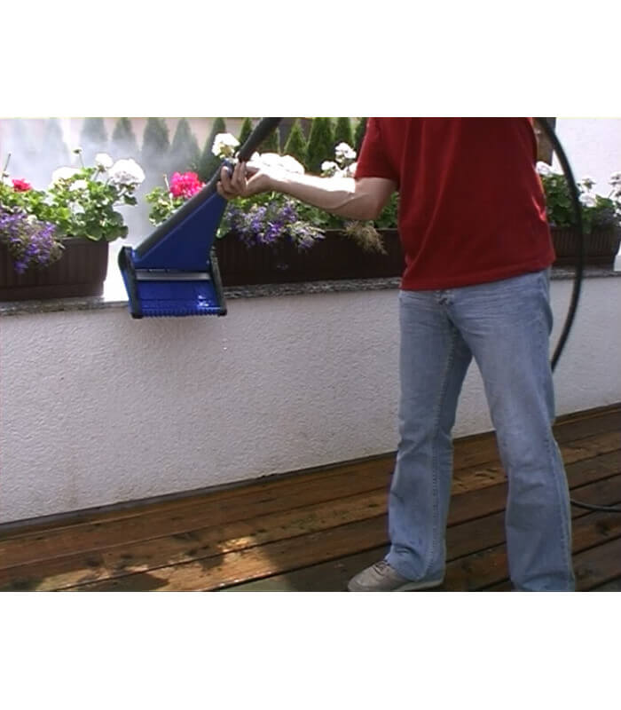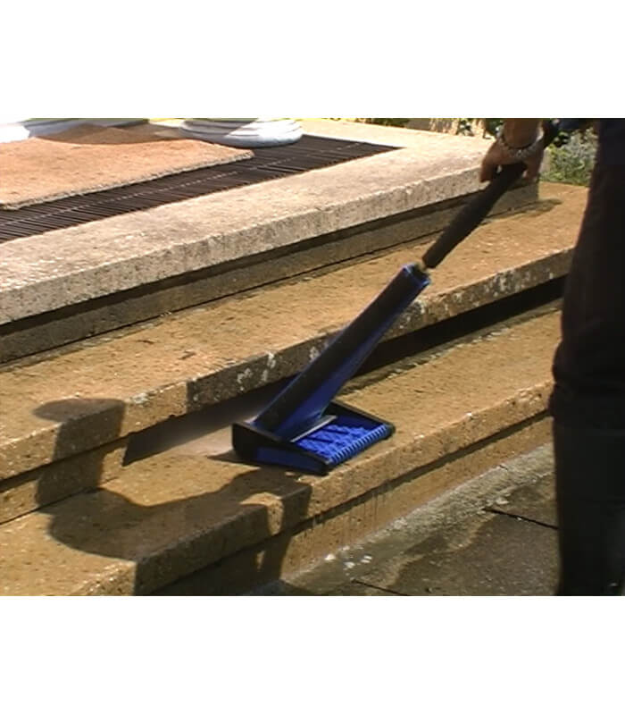 Pour un nettoyage efficace sans projection à l'extérieur L'Hydrobroom calibre 040 nettoie efficacement et en une fois les pavés et les surfaces en bois, les escaliers, les coins et les murs. Les algues, la mousse, les dépôts et les taches peuvent être facilement éliminés.