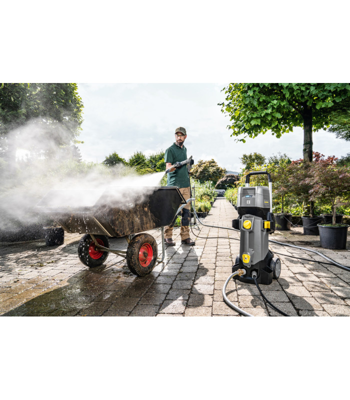 Le HD 4/11 C Bp est idéal pour toutes les zones où aucune source de courant externe n'est disponible comme cela est souvent le cas lors des interventions municipales, dans l'aménagement paysager ou dans le domaine des syndics.