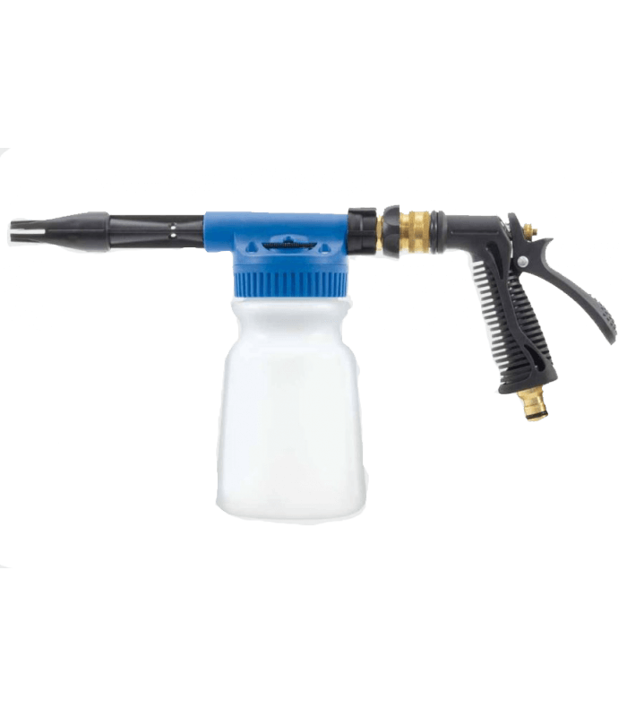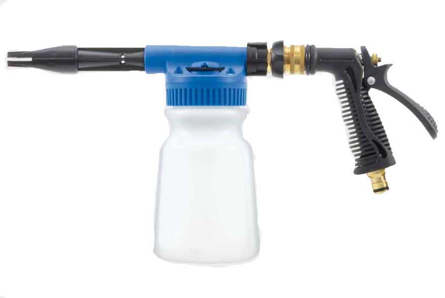 Le canon à mousse basse pression permet la pulvérisation de produits ou de savons moussants d'acides ou d'alcalins, de désinfectants, de dégraissants, de détartrants.