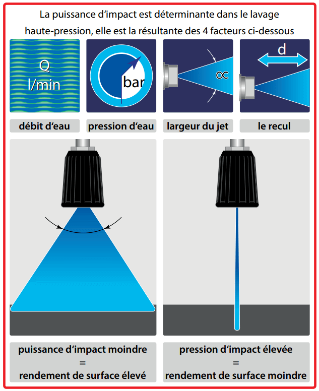 La puissance de votre buse haute pression se détermine selon plusieurs critères: