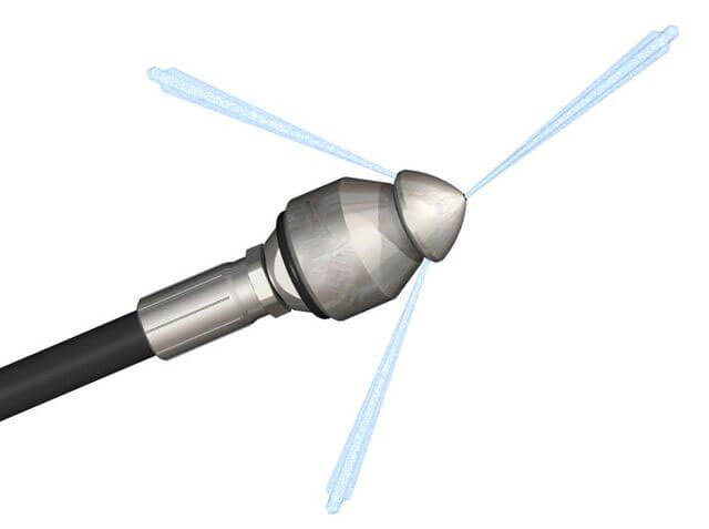 ![]() | La buse de canalisation haute pression est fixée au bout du flexible de canalisation, elle entraine le flexible à l’intérieur de la canalisation et grâce à la poussée exercée elle débouche et nettoie les canalisations bouchées. Les jets arrière (3 ou 4 en fonction des modèles) ont un angle de 30° permettant ainsi un effet de traction optimal pour l’évacuation des impuretés. Le jet frontal lorsqu’il est proposé est destiné à déboucher ou à dégivrer les canalisations. Très petites, elles mesurent moins de 20 mm, elles peuvent ainsi accédées aux zones les plus difficiles d’accès. Elles sont interchangeables et il faut veiller à ce que les trous soient toujours bien entretenus pour une meilleur efficacité. Si les trous s’élargissent la pression en sera diminuée. |