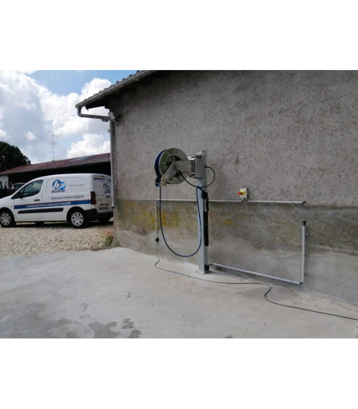 L'enrouleur possède un tuyau haute pression 2 tresses, DN 8 de 20 mètres.