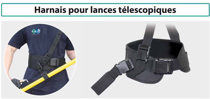 Lance coudée avec porte-buse: | Harnais pour lances télescopiques en option |