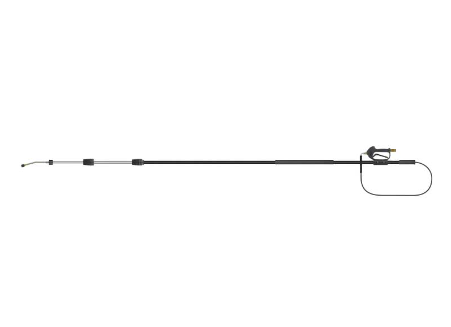 La lance télescopique haute pression, ajustable de 3.20 à 7.80 mètres, permet d'atteindre des zones élevées ou difficiles d'accès pour un nettoyage efficace avec une pression optimale.