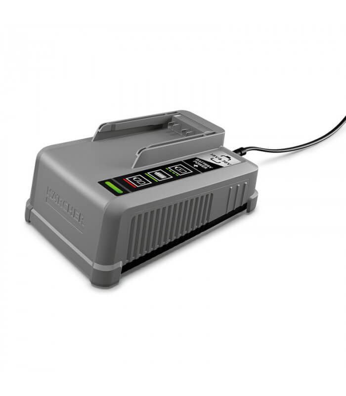Chargeur Universel Karcher: Compatible avec divers outils et équipements électriques Karcher, ce chargeur assure une adaptabilité complète à l'ensemble de la gamme d'outils alimentés par les batteries Power+.