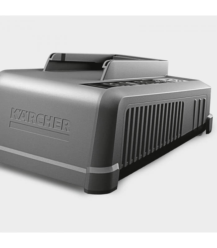 Chargeur Universel Karcher: Compatible avec divers outils et équipements électriques Karcher, ce chargeur assure une adaptabilité complète à l'ensemble de la gamme d'outils alimentés par les batteries Power+.
