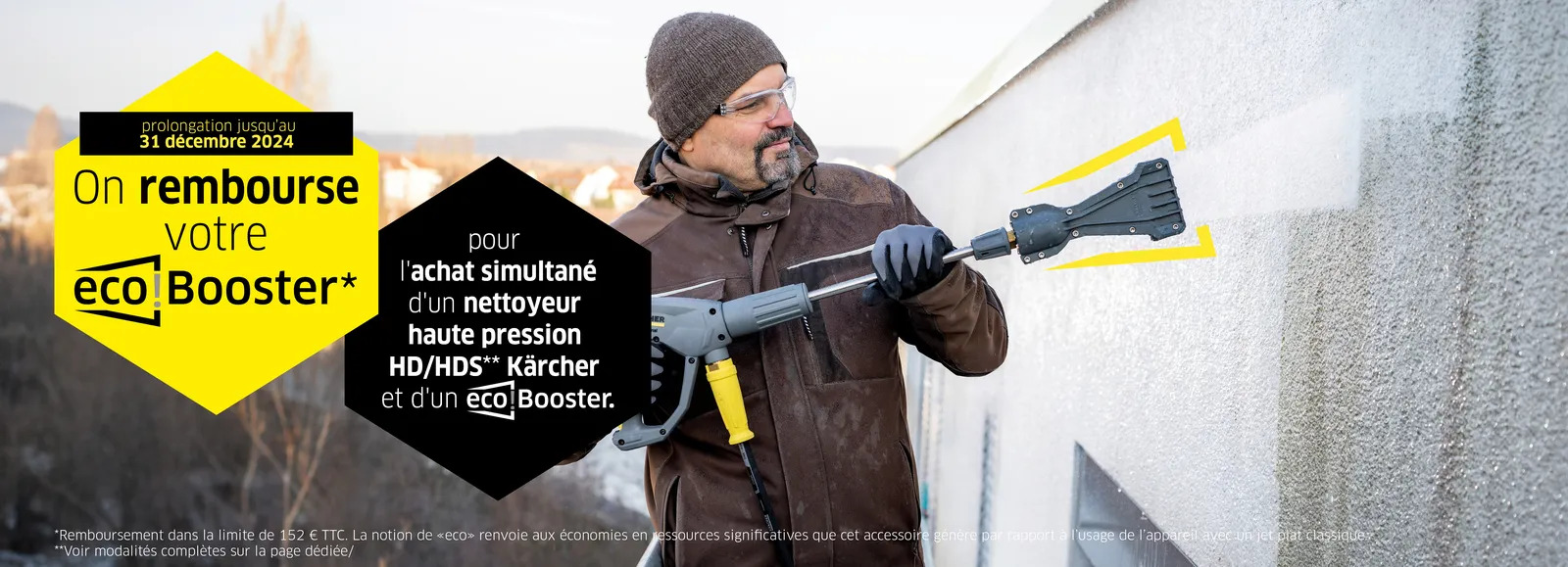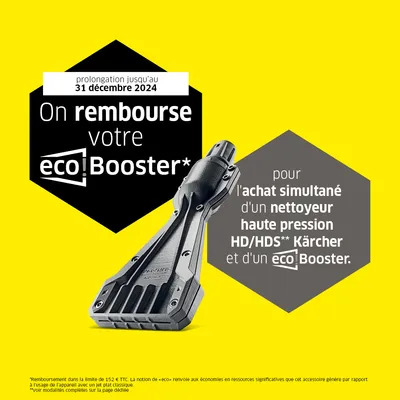 Votre eco!Booster remboursé pour l'achat simultané d'un nettoyeur haute pression et d'un eco!Booster** Kärcher parmi les références ci-dessous entre le 01/06/2024 et le 31/12/2024 :