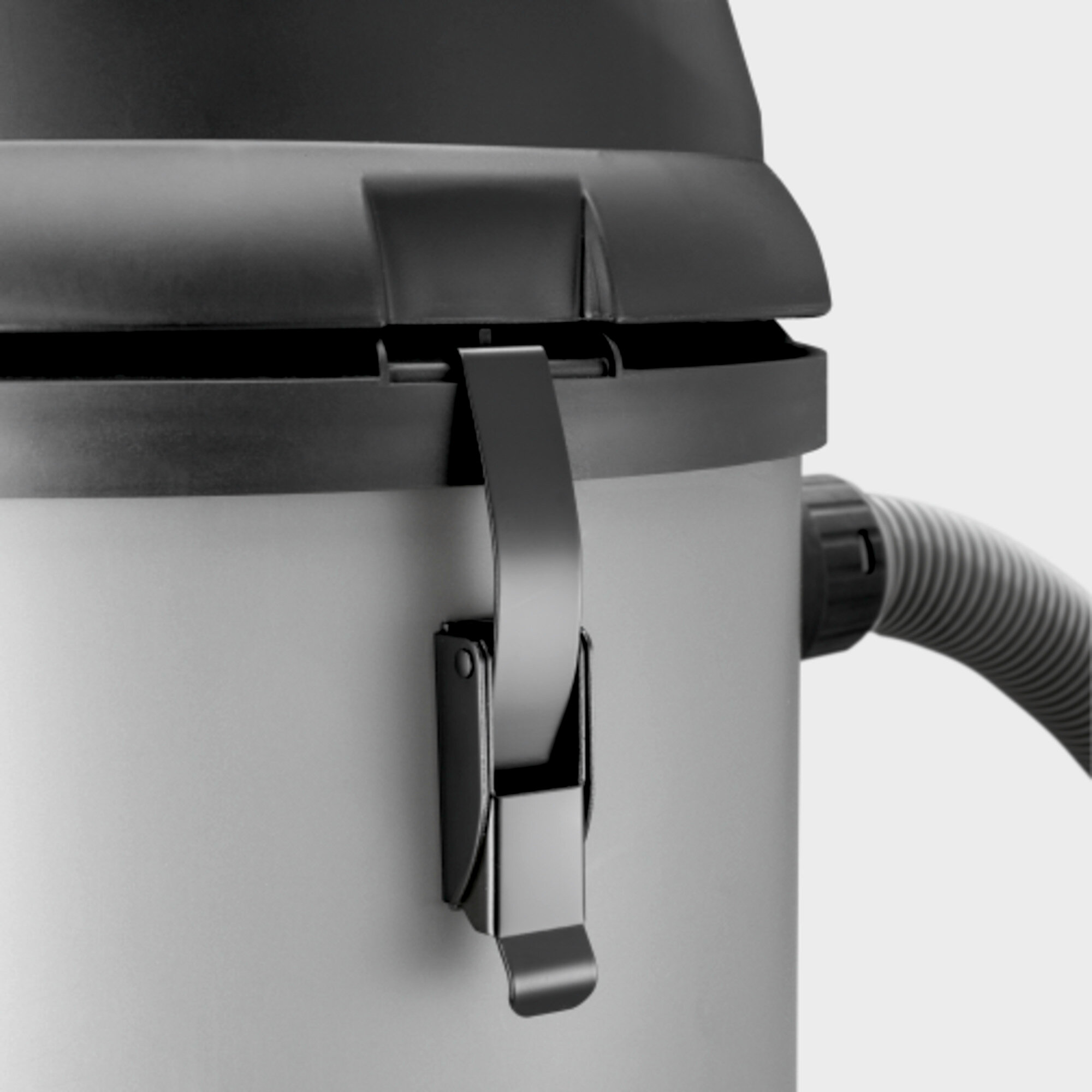 Filtre cartouche avec flotteur Aspiration puissante et constante : performance maintenue sur toute la durée d'utilisation. Système de flotteur automatique : arrête l’aspiration dès que la cuve atteint sa capacité maximale, évitant tout débordement. | Verrous métalliques robustes Verrous métalliques pour une fermeture des plus efficace | Bumper de protection Protection anti-chocs intégrée : préserve l’aspirateur, ainsi que les murs, meubles et équipements des impacts et dommages. |