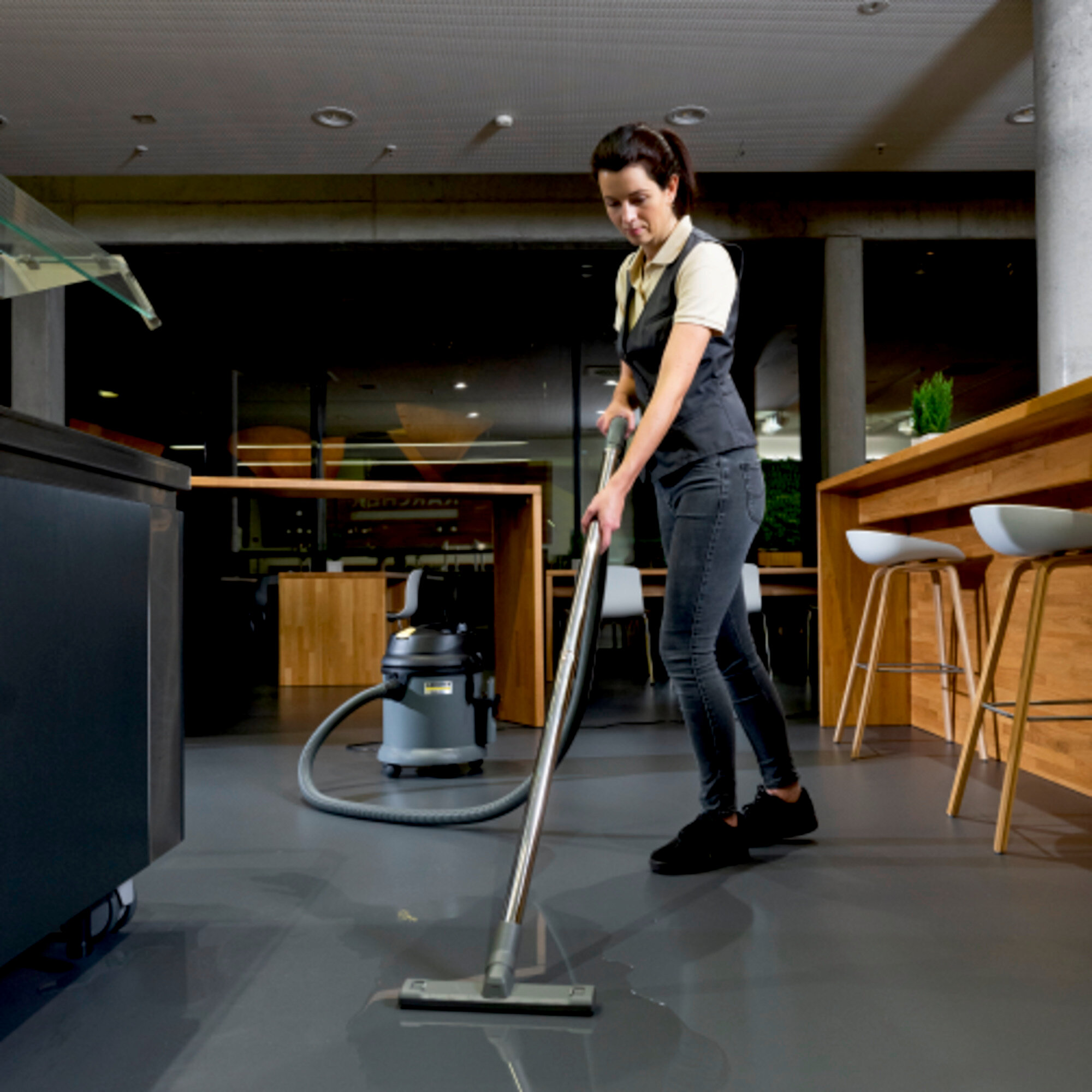 Le NT 27/1 offre une puissance d’aspiration élevée grâce à son filtre cartouche à large surface filtrante, permettant de longues sessions de nettoyage. Son système de flotteur arrête automatiquement l’aspiration lorsque la cuve est pleine, assurant sécurité et efficacité.