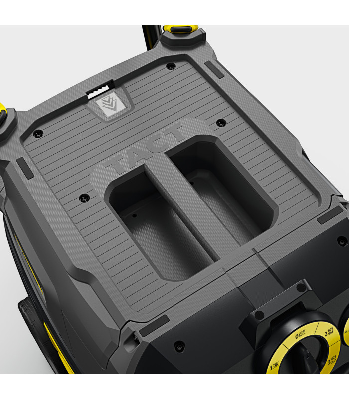 Connexion du tuyau d'aspiration à la tête de la machine La connexion du tuyau flexible à la tête de l'aspirateur optimise la capacité du réservoir et facilite son vidage pour un usage plus pratique. | Possibilité de fixation et stockage d'une boite à outils La tête plate en caoutchouc assure un transport stable des boîtes à outils sans glissement. Les anneaux de charge garantissent une fixation sécurisée avec des sangles. | Guidon optionnel Le montage rapide du guidon optionnel assure un transport facile jusqu'au lieu d'utilisation. |