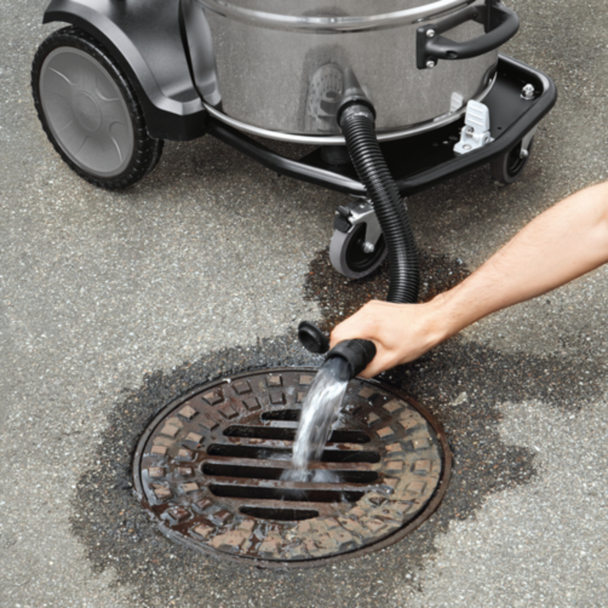| Châssis basculant | Flexible d'évacuation pour la vidange directe des liquides aspirés | Stockage aisé des suceurs et tubes d'aspiration |