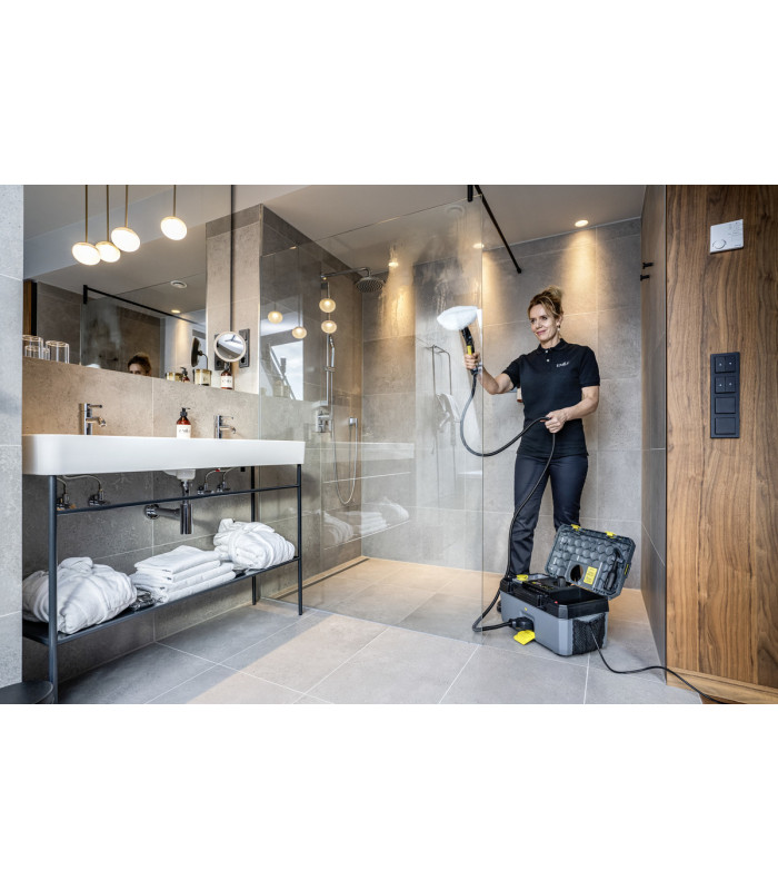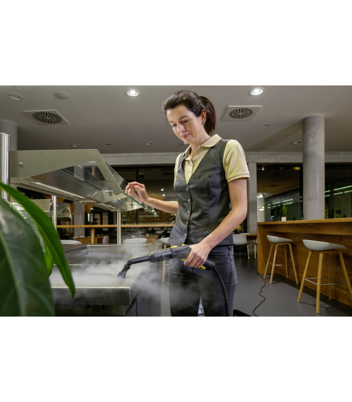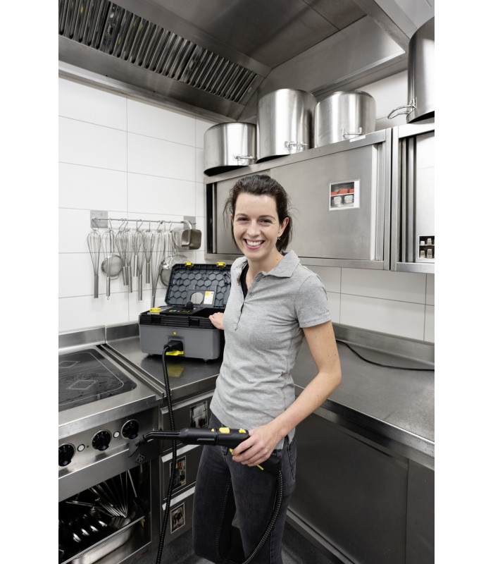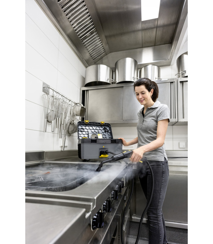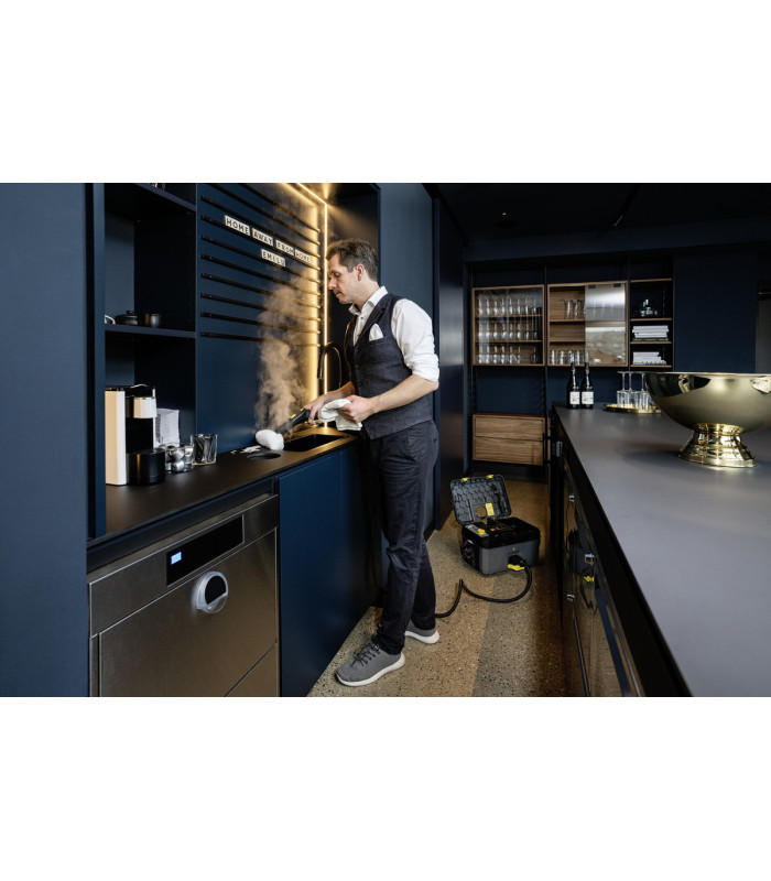 Avec une pression vapeur de 4 bars et la technologie VapoHydro, il élimine efficacement les salissures tenaces et les graisses sans produits chimiques. Son réservoir amovible garantit une autonomie prolongée, tandis que ses nombreux accessoires assurent une polyvalence maximale pour l’entretien des surfaces en inox, carrelages et équipements professionnels.