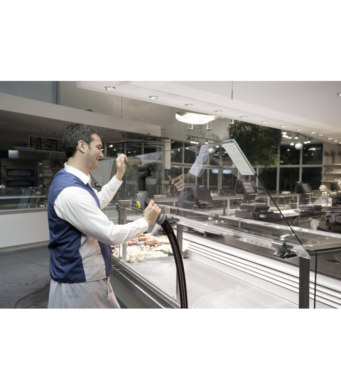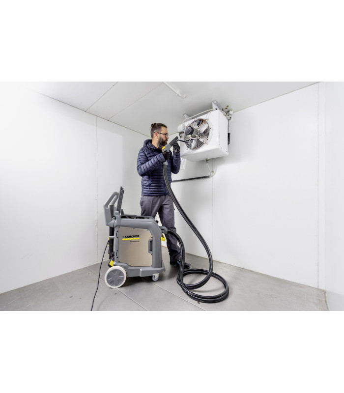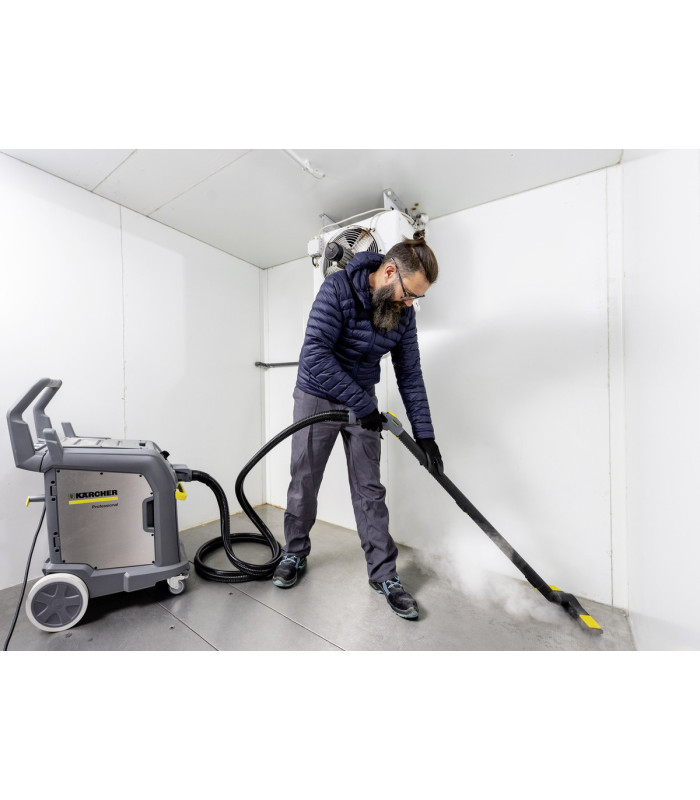 Il assure un nettoyage écologique sans produits chimiques grâce à une pression vapeur élevée de 8 bar et une régulation du débit à trois niveaux. Le commutateur rotatif EASY Operation permet de sélectionner facilement les modes vapeur et aspiration. Son pistolet ergonomique contrôle directement la vapeur, le rinçage et l’aspiration pour une utilisation rapide et flexible.