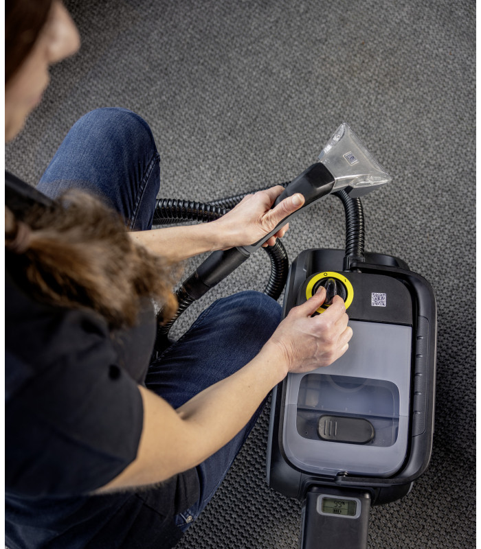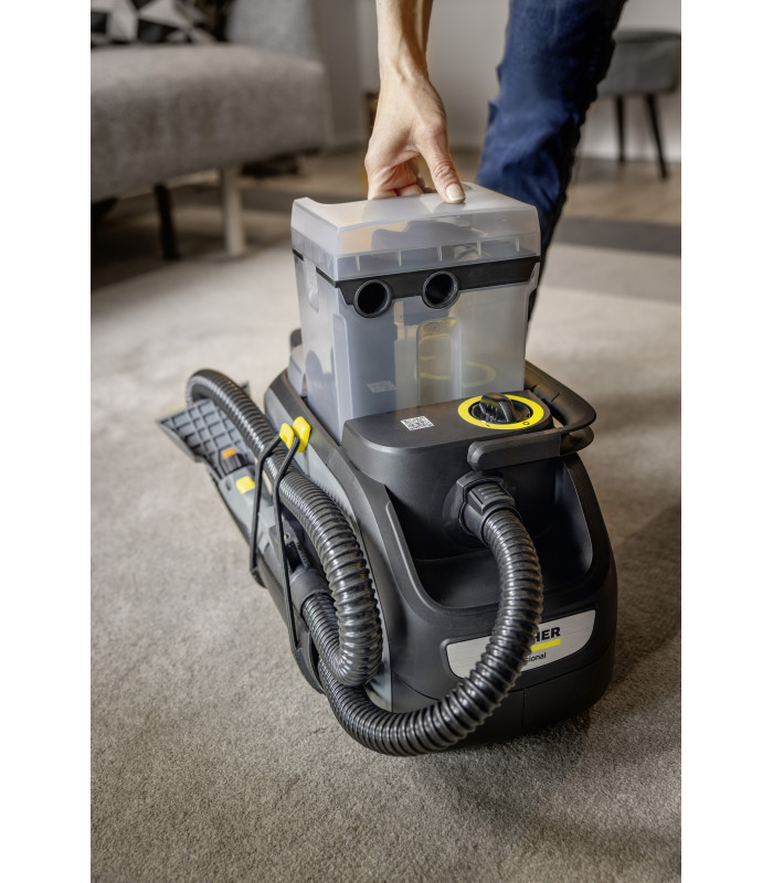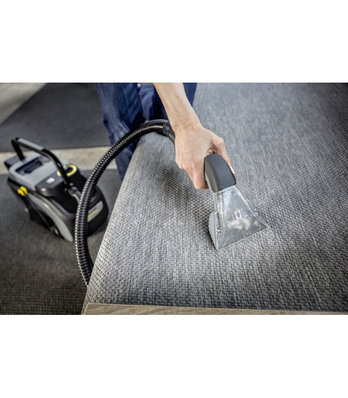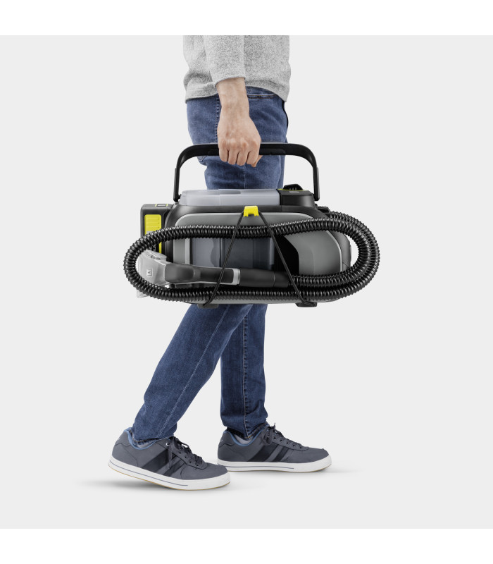 La Kärcher Puzzi 2/1 Bp est une shampouineuse sans fil ultra-compacte, idéale pour le détachage rapide, le nettoyage d'appoint et le ravivage des tapis, tissus d'ameublement et intérieurs de véhicules. Son suceur à main et sa conception sans fil offrent une liberté de mouvement maximale.