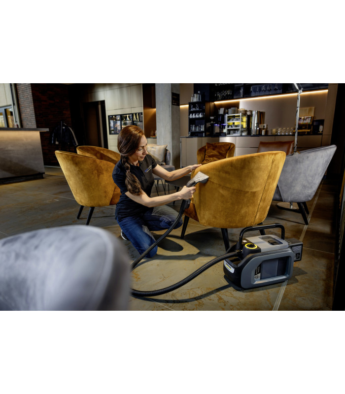 Performance de nettoyage exceptionnelle Découvrez des performances de nettoyage exceptionnelles qui vous offriront un effet avant-après visible sur tous vos textiles ! Notre système combine une puissance d'aspiration élevée avec une pulvérisation de solution détergente fine et régulière. | Design compact et mobilité accrue Cet appareil est parfaitement adapté aux espaces restreints et aux endroits difficiles d'accès, vous permettant de nettoyer chaque recoin sans effort. Profitez d'une liberté de mouvement et d'une flexibilité d'utilisation inégalées. | Qualité professionnelle : robuste et durable Puissante turbine d'une durée de vie de 1000 heures. Pompe à membrane très robuste et résistante à l'usure Suceur fauteuil compact, ultra court et robuste. |