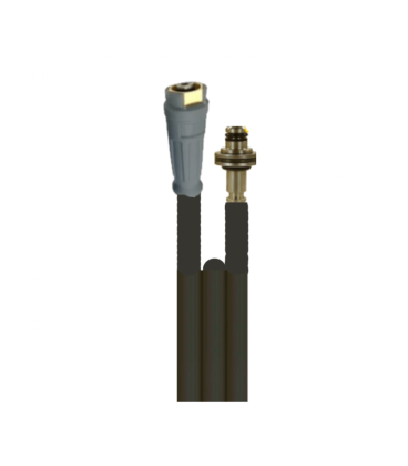 Flexible haute pression DN8 avec deux tresses métalliques et une fixation en raccord EASYLock, pour s'adapter aux nouvelles poignées Karcher EASYLock. (machine vendue depuis Janvier 2017).