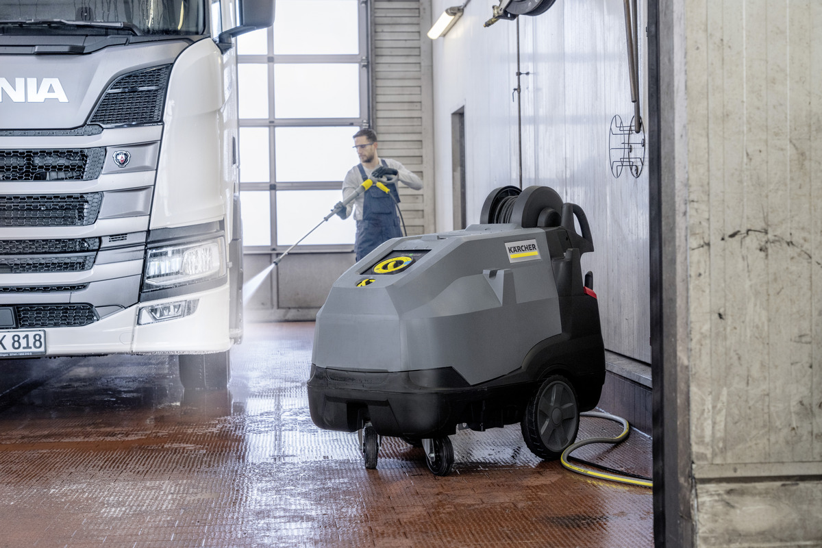 Nettoyeur haute pression à eau chaude triphasé, compact et puissant, idéal pour un nettoyage intensif. Avec moteur à faible vitesse, pompe céramique et mode eco!efficiency, il offre performance et faible consommation d'énergie. Poignée-pistolet EASY!Force et lance de 1050 mm pour un usage ergonomique.