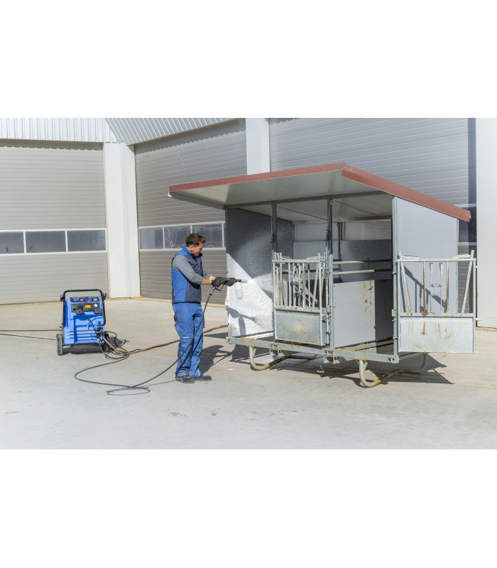 - Avec enrouleur : 20 m de flexible haute pression à tresse métallique