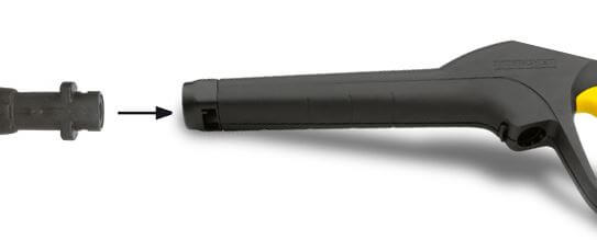 Cette lance-brosse se fixe sur votre poignée KARCHER, en lieu et place de votre lance habituelle. La fixation se fait grâce à un coupleur quart de tour: