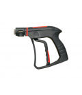 Poignée pistolet haute pression avec raccordement 1/4F en sortie et 3/8 F ROTATIF en entrée. Peut être montée sur tout type de nettoyeur haute pression.