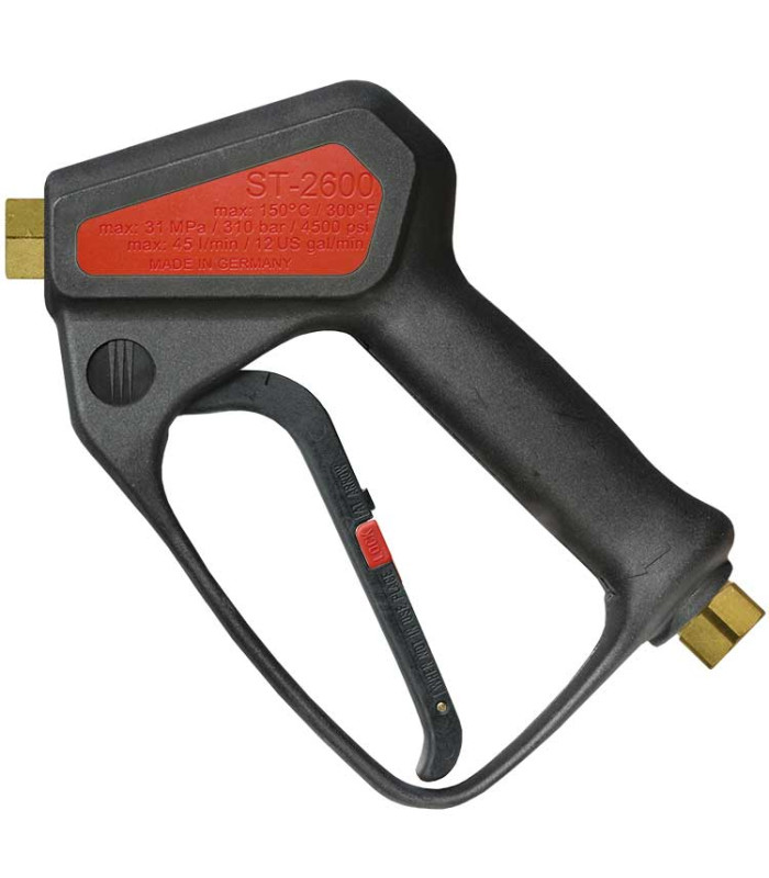 Conçu pour les professionnels exigeants, le pistolet haute pression ST-2600 combine puissance, confort et sécurité. Grâce à son raccord 3/8F en entrée, il assure une manipulation fluide et évite les torsions du flexible. La sortie 1/4F s’adapte facilement à vos lances de pulvérisation pour une compatibilité maximale.
