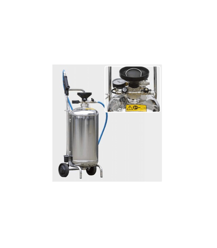 Remplissage fonctionnel grâce à la bonde en forme d'entonnoir. Branchement 1/4" M pour l'alimentation en air comprimé. Max. 8 bar, soupape de sécurité préréglée. Flexible 10 m résistant aux agents chimiques, lance 600 mm équipée d'une buse de pulvérisation, indicateur de niveau. Système de dosage combiné avec possibilité de réglage d'air et produit mousse. Pour obtenir une mousse uniforme un branchement permanent au réseau d'air comprimé est nécessaire. Adaptés à la pulvérisation des véhicules ou dans l'industrie alimentaire.