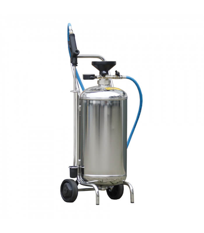 Ce pulvéristeur permet de pulveriser tout type de produit sur une surface pour lavage ou désinfection par exemple. Remplissage fonctionnel grâce à la bonde en forme d'entonnoir. Branchement 1/4" M pour l'alimentation en air comprimé. Max. 8 bar, soupape de sécurité préréglée. Flexible 10 m résistant aux agents chimiques, lance 600 mm équipée d'une buse de pulvérisation, indicateur de niveau. Système de dosage combiné avec possibilité de réglage d'air et produit mousse. Pour obtenir une mousse uniforme un branchement permanent au réseau d'air comprimé est nécessaire. Adaptés à la pulvérisation des véhicules ou dans l'industrie alimentaire