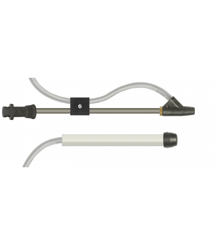Une lance de sablage haute pression se branche sur la poignée de votre nettoyeur haute pression. La buse de sablage permet l'ajout de sable à l'eau sous pression. Cette opération est très utilisée pour décaper des surfaces peintes (volet, portail, crépi, etc...) ou par les professionnels pour du ravalement ou le nettoyage de graffitis. Le tube d'aspiration doit arriver par le haut de la buse pour éviter un retour d'eau dans le sable. Le tube d'aspiration fait 300 mm et le tuyau est de 3 mètres. La ganulométrie du sable doit être comprise entre 0,2 à 0,8 mm |
