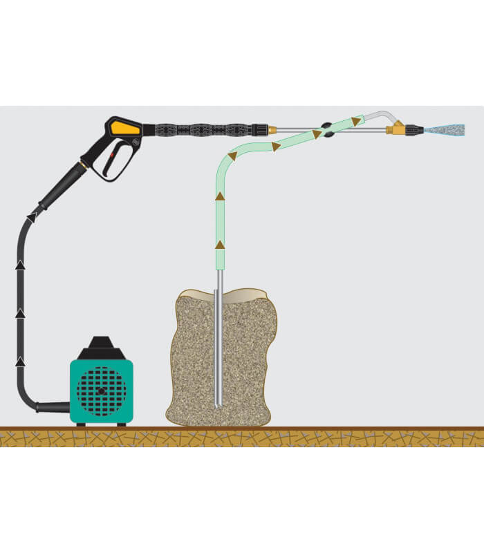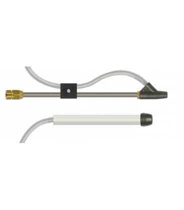 Une lance de sablage haute pression se branche sur la poignée de votre nettoyeur haute pression. La buse de sablage permet l'ajout de sable à l'eau sous pression. Cette opération est très utilisée pour décaper des surfaces peintes (volet, portail, crépi, etc...) ou par les professionnels pour du ravalement ou le nettoyage de graffitis. Le tube d'aspiration doit arriver par le haut de la buse pour éviter un retour d'eau dans le sable. Le tube d'aspiration fait 300 mm et le tuyau est de 3 mètres. La ganulométrie du sable doit être comprise entre 0,2 à 0,8 mm |