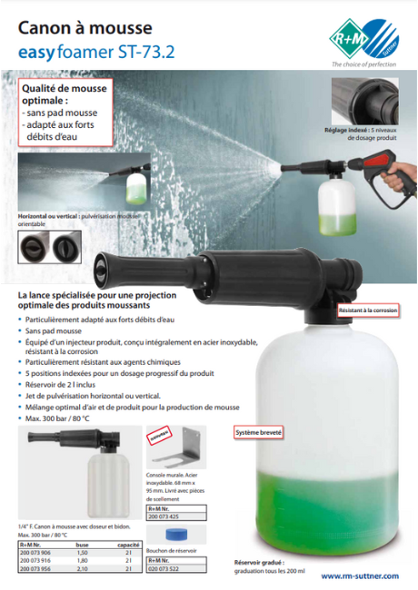 Grâce au parfait mélange d'air et de produit notre canon à mousse easyfoamer365+ permet de générer une mousse active persistante d'une super qualité.