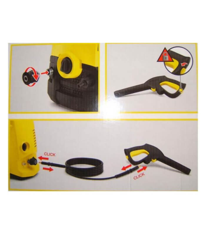 De l'autre côté, il y a un raccord femelle Quick coupling permettant de brancher les flexible karcher avec raccord rapide.