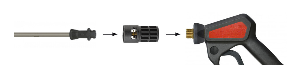 Grâce à cet adaptateur vous pouvez brancher tous les accessoires Karcher: lance, kit de sablage, ensemble de canalisation, brosses, etc... sur une poignée ou sur un support en 1/4.