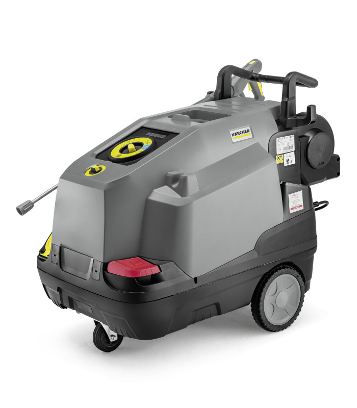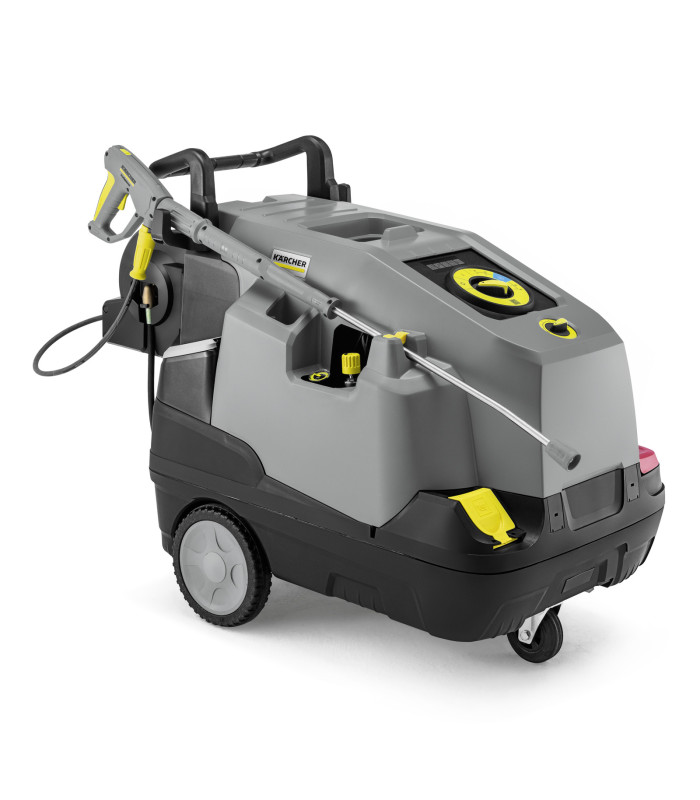 | Ergonomique et facile à utiliser, le HDS 6/15 CXA monophasé fait partie de la gamme Compact des nettoyeurs haute pression à eau chaude. Doté d’un mode eco!efficiency, il associe puissance et économie. Une pompe axiale robuste à 3 pistons génère la pression nécessaire, tandis que l'enrouleur automatique simplifie l'utilisation du flexible haute pression Ultra Guard de 15 mètres, revêtu de Teflon®, même sous pression. Le pistolet EASY!Force Advanced, avec technologie de buse brevetée et attaches rapides EASY!Lock, garantit un travail ergonomique et efficace. Le système antibélier SDS réduit les vibrations pour plus de confort. Grâce à sa technologie à eau chaude, il élimine efficacement les lubrifiants, réduisant ainsi la consommation de détergents, dosés avec précision depuis un réservoir de 15,5 litres. Pression et débit d’eau sont ajustables selon les besoins. Conçu pour les environnements exigeants, le HDS 6/15 CXA est facile à entretenir grâce à ses systèmes de détartrage, son filtre à eau et sa soupape de sécurité, qui protègent les composants internes. Son châssis robuste résiste aux chocs, tandis que ses grandes roues et sa roulette pivotante offrent une excellente mobilité. Enfin, des espaces de rangement intégrés permettent de transporter les accessoires nécessaires en toute simplicité. CARACTERISTQUES ET AVANTAGES