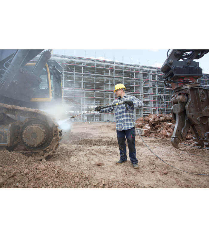 | Puissant, l'HDS De est équipé d'un robuste moteur diesel 4 temps et d'un démarreur électrique. Tous les éléments sont logés dans un solide châssis tubulaire en acier, conçu pour pouvoir être levé à l'aide d'une grue ou d'un chariot élévateur à fourche, qui assure une protection intégrale dans des conditions difficiles. Pour une durée de vie prolongée, le moteur est équipé d'un dispositif de réduction automatique de la vitesse qui abaisse le niveau sonore en cas d'interruption du travail. Les matériaux de qualité supérieure utilisés dans la pompe haute pression - culasse en laiton, soupapes en acier inox, pistons en inox plaqué nickel-chrome - garantissent une longue durée de vie et des performances élevées. Une soupape de décharge, un dispositif intégré de régulation de la pression et du débit d'eau ainsi que le mode vapeur garantissent assurent une adaptation optimale aux différents travaux de nettoyage. La poignée-pistolet EASY!Force réduit la force de recul à zéro et diminue les risques de troubles musculo-squelettiques, pour un plus grand confort. Elle est équipée dune connexion EASY!Lock fiable et 5 fois plus rapide ainsi que dune valve en céramique 5 fois plus robuste. CARACTERISTIQUES ET AVANTAGES