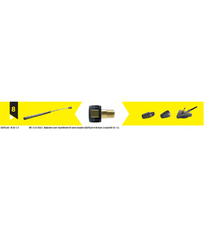 L'adaptateur 8 EASY!Lock adaptateur pour le raccordement de lances EASY!Lock et de buses avec raccord M 18 x 1,5a