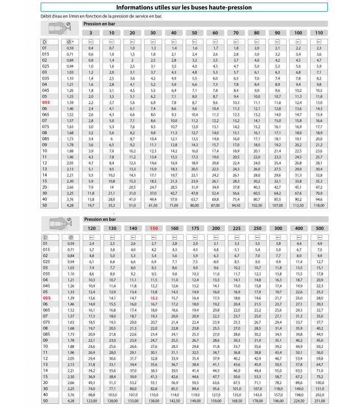 Nous vous invitons à calculer le calibre de votre buse grâce à l'outil à votre disposition en suivant ce lien: calculer votre calibre de buse haute pression