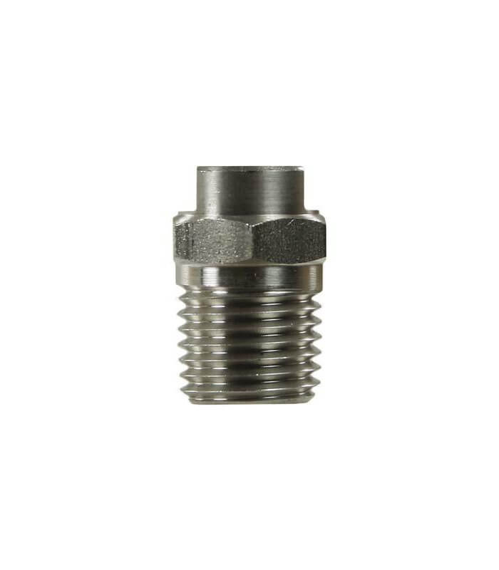 Cette buse haute pression permet d'avoir un jet fixe avec une pression constante. elle se fixe au bout d'une lance haute pression à l'aide d'un porte-buse. La mode de fixation pastille 1/4 M correspond à un filetage gaz de 13,157 mm :