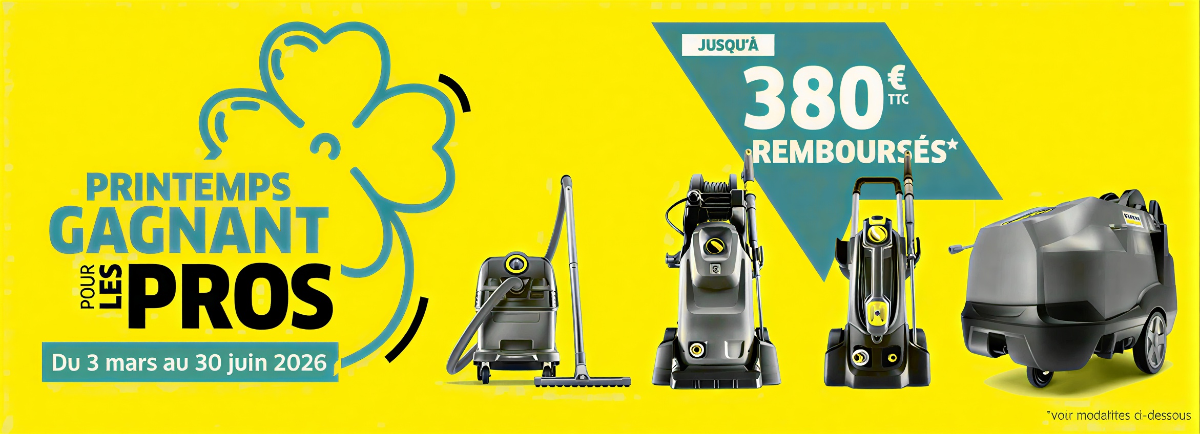 Offre de remboursement valable pour tout achat d’un produit professionnel Kärcher parmi les références ci-dessous entre le 03/03/2026 et le 30/06/2026 :